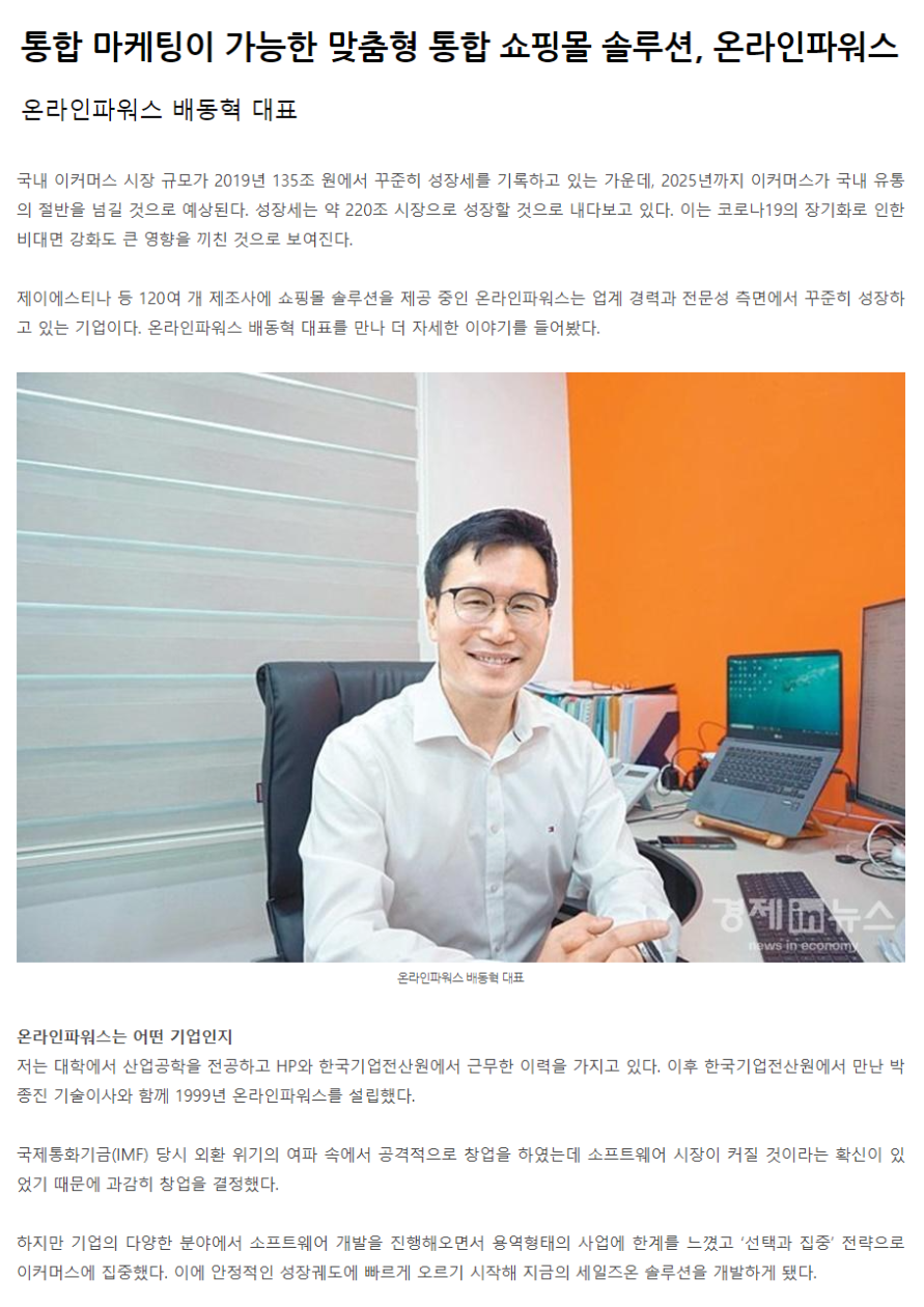 [경제in뉴스] 통합마케팅이 가능한 맞춤형 통합 쇼핑몰 솔루션, 온라인파워스